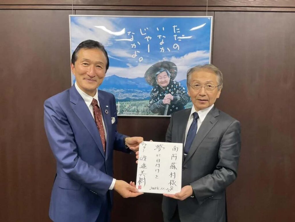 南阿蘇村訪問後のラジオ放送で村長を絶賛!〜〜〜『朝の1時間、村長室が移動して玄関の入り口にある。入り口に村長が座って、いつでも相談に来てほしいと言ってる。そのリーダーシップって間違いなくある。 物凄い熱い方で、この村があるのは水なんだと、水を守るために我々はこうやっていかなきゃいけないんだと滔々と語ってましたね。』〜〜〜